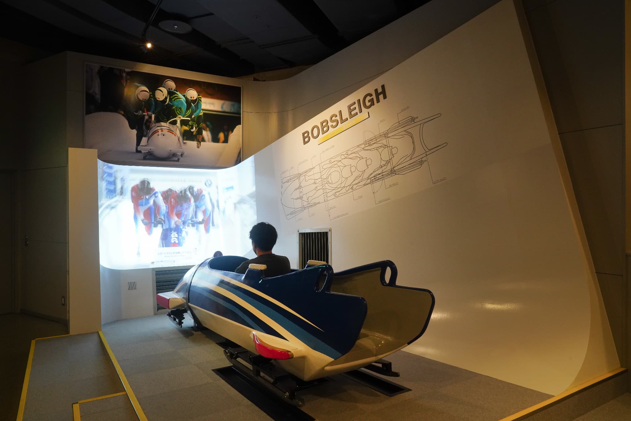選手の視点で、オリンピック競技を体感できるアトラクションが6種類あり、シミュレーターを通じて、