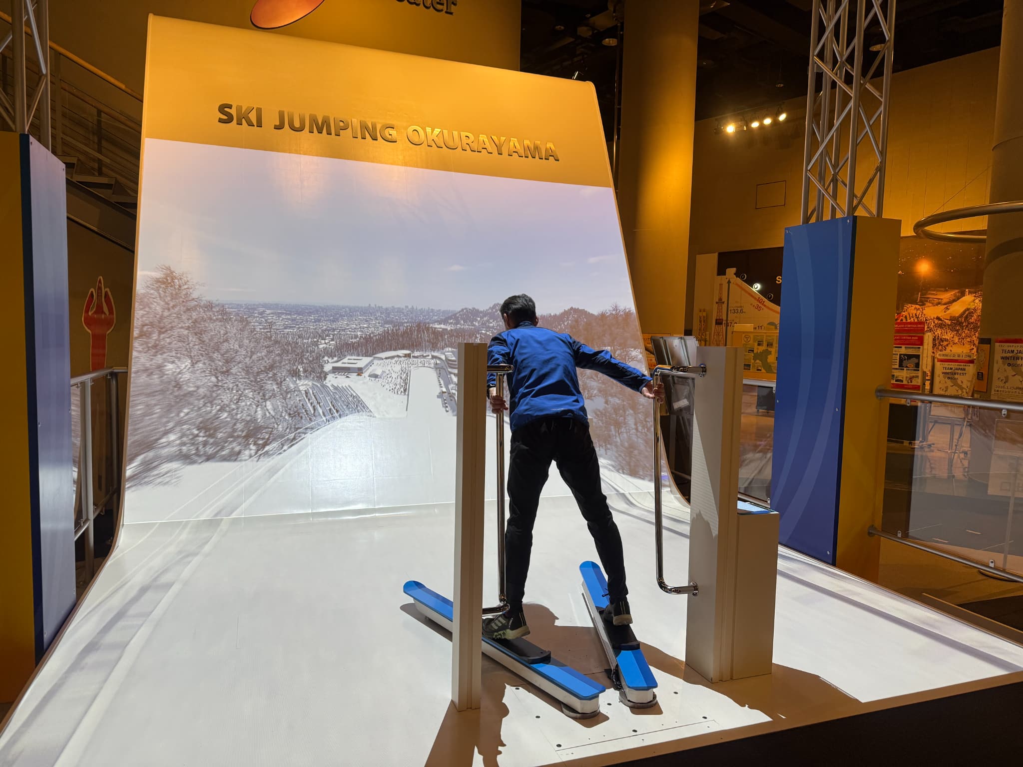 選手の視点で、オリンピック競技を体感できるアトラクションが6種類あり、シミュレーターを通じて、